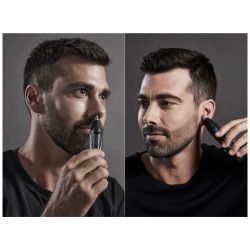 Rowenta NOSE & EAR TRIMMER TN3011F0 je električni trimer za uklanjanje neželjenih dlačica u nosu i ušima dizajniran da omogući sigurno, bezbolno i precizno skraćivanje sitnih dlačica. Opremljen je rotirajućim sustavom oštrica od 360° koji se prilagođava obliku nosne i ušne šupljine i učinkovito uklanja dlačice bez iritacija. Uređaj koristi Vision tehnologiju osvjetljenja koja pomaže osvijetliti područje rada kako bi se i najsitniji dlačice sigurno uklonile, a njegova 100 % vodootporna konstrukcija omogućava jednostavno čišćenje pod vodom. Zaštitni poklopac čuva oštrice čiste i spremne za ponovnu upotrebu, a uređaj radi na AA bateriju (nije uključena). TN3011F0 je idealan za muškarce koji žele uredan izgled bez potrebe za komplikovanim uređajima ili posjetama frizeru.