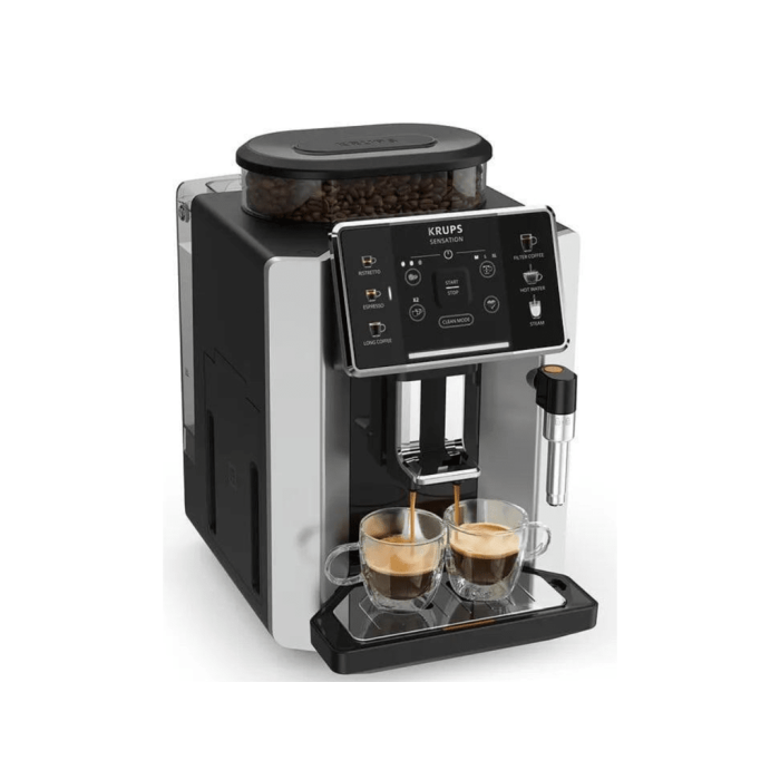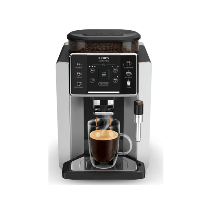 Krups Sensation automatski espresso kafe aparat.Tehnologija Barista inisde za savrše kvalitet kafe.Direktan odabir pića.Auto-clean sistem.Mlaznica za pjenu.Intuitivni dipslay na touch.5 nivoa granulacije mlina.260 g kapacitet spremnika kafe,1.7 L