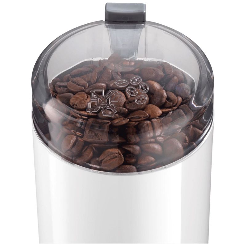 Mlin za kafu, priključna snaga 180 W, radi samo kod zatvorenog poklopca, za 75 g. zrna kave, mljevenje 150 g / min., nož i čašica za mljevenje iz nehrđajućeg čelika, sigurnosni prekidač