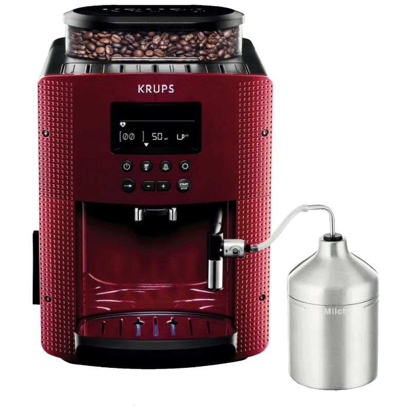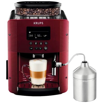 KRUPS Essential EA81: povratak u bit espressa Kompaktni aparat bez ograničenja u količini. S ovim potpuno automatiziranim espresso aparatom, vratite se u bit espressa. Jednostavan za upotrebu zahvaljujući vrlo velikom LCD displeju. 3 postavke temperature za postizanje istinskog okusa espressa i kafe. 3 postavke finoće mljevenja za odabir savršene arome. Pribor Auto Cappuccino XS6000 uključen. Mlaznica za paru za ukusni cappuccino.