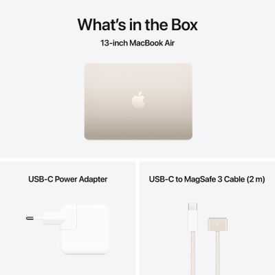 MacBook Air 13-inch,Starlight, Model A3240,M4 CHIP WITH 10C CPU, 8C GPU,16GB unified memory,30W USB-C Power Adapter,256GB SSD st