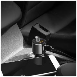 FM modulator (Transmitter), bežično povezivanje na bilo koji auto radio (87,5 - 108 MHz), Bluetooth veza za telefon v4.2 - Handsfree, Bluetooth stereo reprodukcija glazbe, MP3, WMA reprodukcija , reprodukcija sa USB-a ( USB 32GB max. ), USB punjač za telefon, 5 V / 2.4 A, ulazni napon 12 - 24 V / 2.4 A, USB izlaz 5 V / 2.4 A, dimenzije 90 x 35 x 35 mm