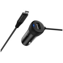 Univerzalni USB Auto punjač sa micro USB kabelom, 1 x USB, 12-24V, 5V / 2.4A, total 17 W / 3.4 A, dužina kabela 1.2 met., automatska zaštita od preopterećenja, dimenzije 55 x 26 mm, za: SmartPhone, MP3 player, PDA, navigaciju...
