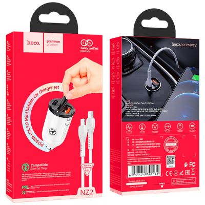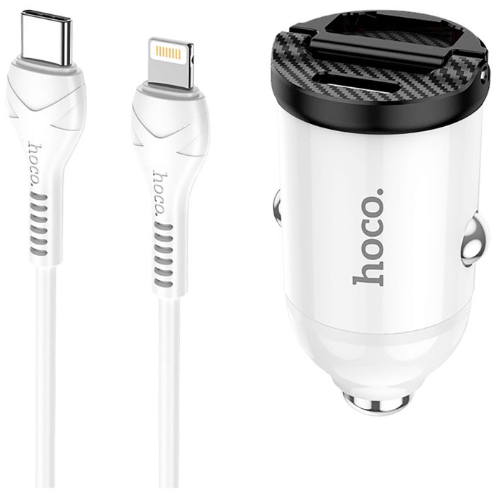hoco. Auto punjač sa Lightning kabelom, PD + QC3.0, 2 x USB, 4.8 A - NZ2 Link, type C-Lightning, White