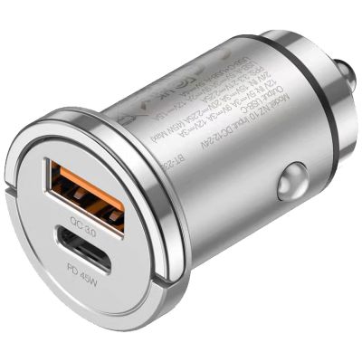 Auto punjač s funkcijom brzog punjenja i dvostrukim izlazom. Omogućuje trenutno punjenje mobilnih uređaja u automobilu.