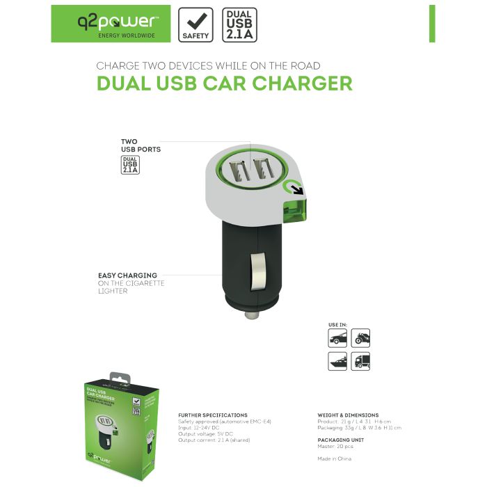 q2power Auto punjač, Dual USB, 2.1A - DUAL USB CAR CHARGER