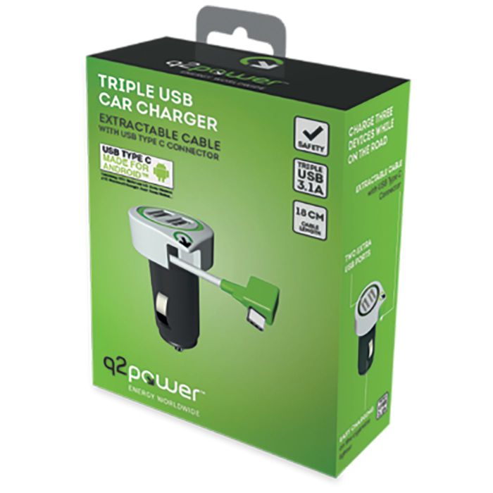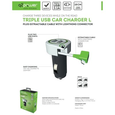 q2power Auto punjač, Dual USB, 3.1A, lightning konektor - TRIPLE USB CAR CHARGER L