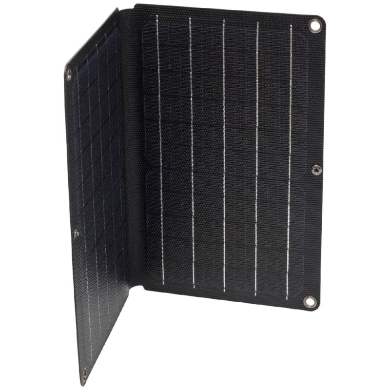 Sklopivi, prostorno štedljiv dizajn omogućava da punjač ponesete bilo gdje. Može se okačiti pomoću prstenova i brzo pričvrstiti na ruksak, šator ili bilo koju drugu površinu zahvaljujući dva karabinera s oprugom koja dolaze u paketu. LED indikator punjenja omogućava lako praćenje procesa punjenja.