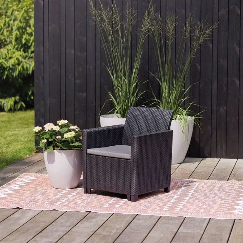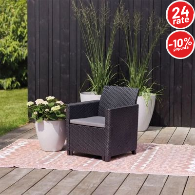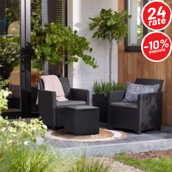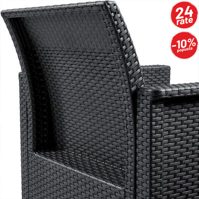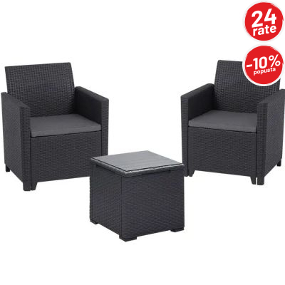 Balkonski set Maria Vigo idealan je izbor za uređenje balkona, manje terase ili dvorišta. Zahvaljujući modernom dizajnu sa teksturom ratana i elegantnoj sivoj (grafit) boji, set se lako uklapa u svaki prostor i pruža ugodan kutak za opuštanje, jutarnju kafu ili večernje druženje na svježem zraku.