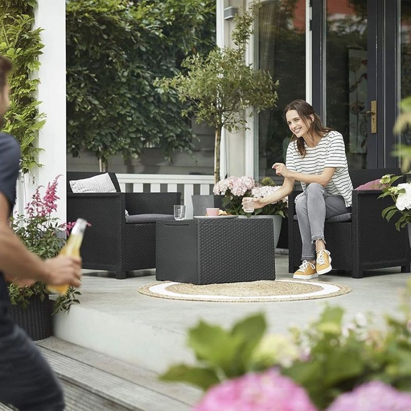 Set je izrađen od kvalitetne plastike otporne na UV zrake i vremenske uslove, što garantuje dugotrajnost i jednostavno održavanje. Udobne fotelje sa jastucima omogućavaju prijatno sjedenje, dok praktični VIGO sto ima dodatni prostor za odlaganje sitnica poput časopisa, dekica ili dodatne opreme za terasu.