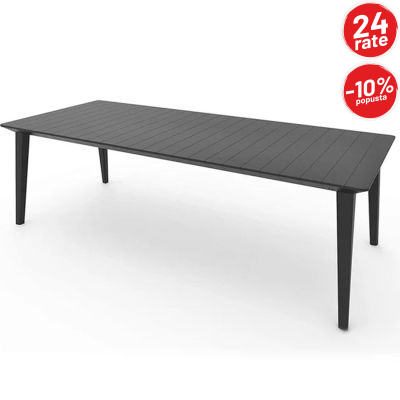 Baštenski sto Allibert Lima 240 cm odličan je izbor za sve koji traže veliki, stabilan i elegantan sto za dvorište, terasu ili baštu. Moderan dizajn sa teksturom koja imitira drvo daje prirodan i luksuzan izgled, pa se lako uklapa uz različite vrste baštenskog namještaja.