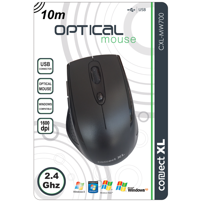 Connect XL Miš bežični, 2.4GHz, 1600dpi, crna boja - CXL-MW700
