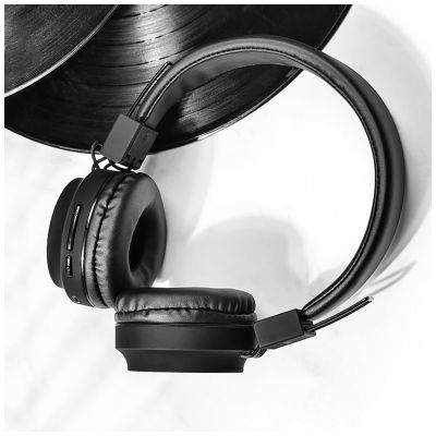 Bežične Bluetooth slušalice, sa mikrofonom (Handfree funkcija), zvučnik Ø 40 mm, ugrađena punjiva baterija 300 mAh, vrijeme punjenja cca 2.5 h, reprodukcija cca 12 h, standby do 200 h, utor za TF memorijsku karticu, dimenzije 180 x 150 x 70 mm, boja crna