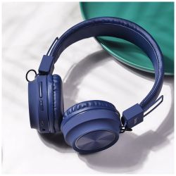 Bežične Bluetooth slušalice, Handfree funkcija, zvučnik Ø 40 mm, ugrađena punjiva baterija 300 mAh, vrijeme punjenja cca 2.5 h, reprodukcija cca 12 h, standby do 200 h, utor za TF memorijsku karticu, dimenzije 180 x 150 x 70 mm, boja plava