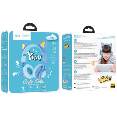 hoco. Slušalice bežične sa mikrofonom, Bluetooth, mačje uši, plava - W39 slušalice Mačje uši,Plave
