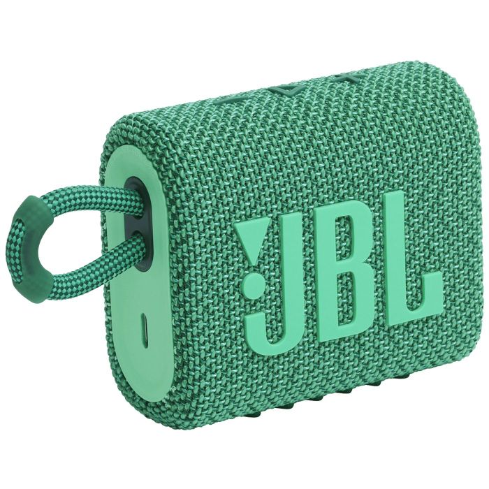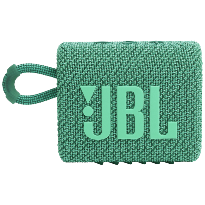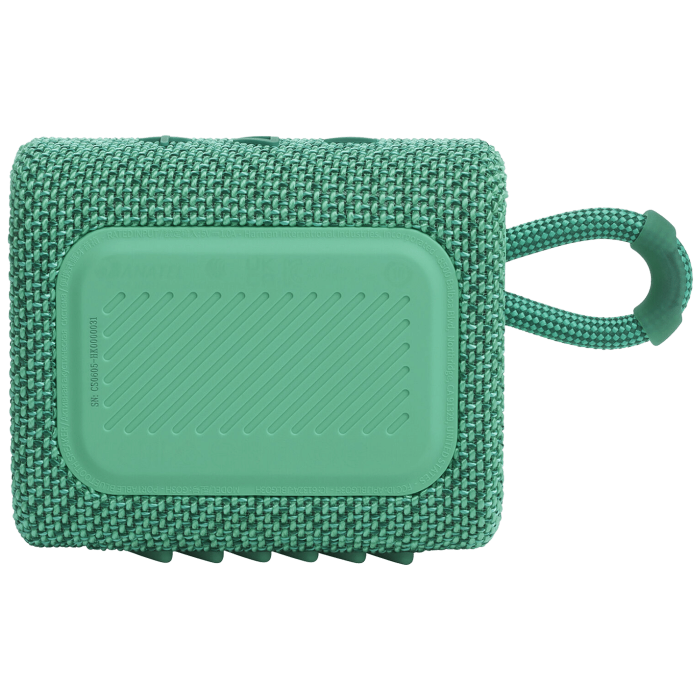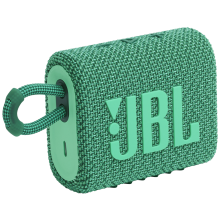 Novi inovativni, ekološki prihvatljiv dizajn, ista bogata JBL Original Pro Sound izvedba. Dizajniran korištenjem do 90% PCR (reciklirane nakon upotrebe) plastike sa 100% recikliranom tkaninom na rešetki zvučnika, dizajn JBL Go 3 Eco značajno smanjuje količinu korištene čiste plastike, a istovremeno smanjuje ukupni ugljični otisak proizvoda. Također dolazi u održivom pakiranju od FSC certificiranog papira otisnutog sojinom tintom.