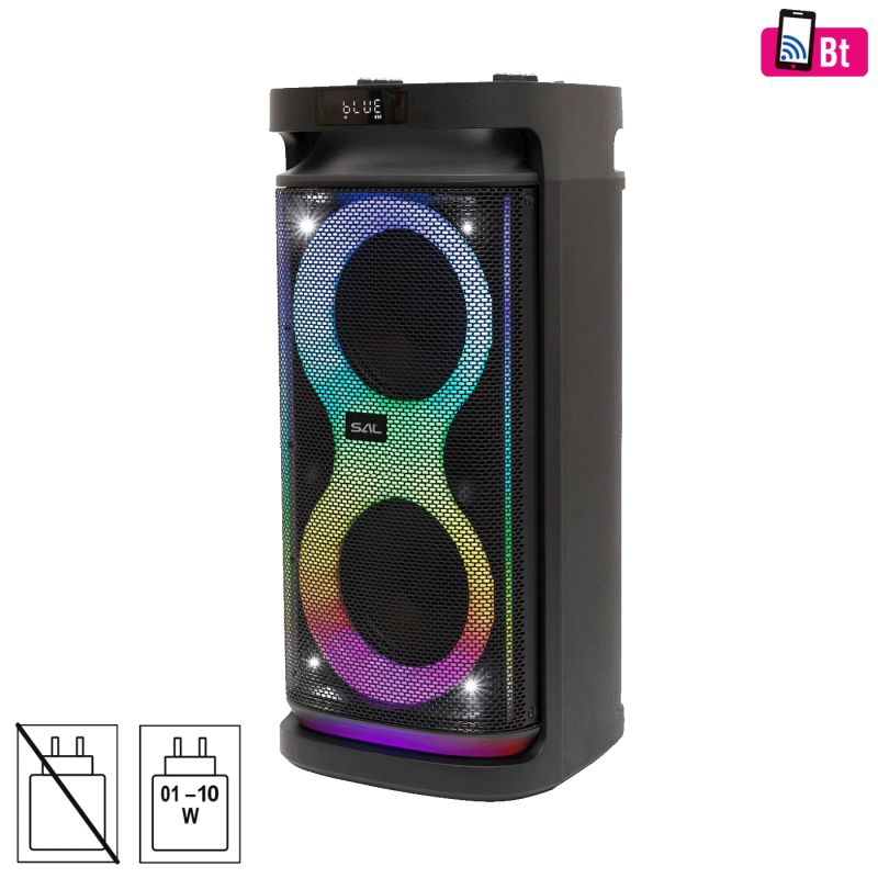 Ne dopustite da prosječni govornik pokvari atmosferu zabave! SAL PAR2100BT party sound box ima sve što vam je potrebno za nezaboravno okupljanje - jaki bas, spektakularna svjetla i odličan zvuk u jednom kompaktnom uređaju!