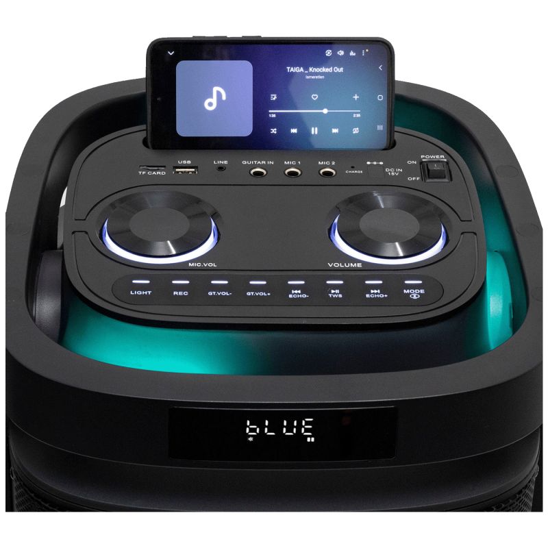 Dvosmjerni zvučni sustav i bas-refleksni dizajn osiguravaju dubok, pun bas i čist, detaljan zvuk. Dvostruki subwoofer čini svaki ritam, što ga čini savršenim izborom za kućne zabave, vrtna okupljanja ili manje događaje.