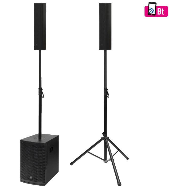 Zvučni sustav je dvosmjerni, aktivni bass-reflex dizajn, u kojem ukupno 9 ugrađenih zvučnika osigurava pun i uravnotežen zvuk. 8 3” neodimskih zvučnika punog raspona popraćeno je visokoučinkovitim 12” subwooferom, koji izvanredno radi čak i u niskom frekvencijskom rasponu. Tehnologija pojačala klase D osigurava energetski učinkovit rad i istovremeno dinamičan zvuk.