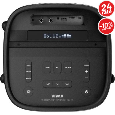 Bluetooth zvučnik Vivax BS-1000 je snažan i praktičan prijenosni zvučnik koji pruža kvalitetan zvuk za svakodnevno uživanje u muzici. Idealan je za korištenje kod kuće, na putovanju ili tokom druženja sa prijateljima.
