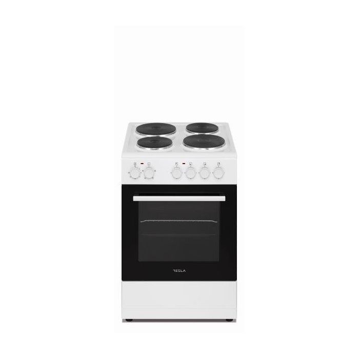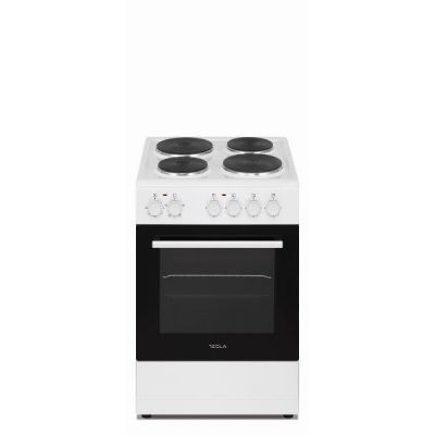 TESLA Šporet CS5400SW; Samostojeći; 4x elekt.zone (2x brze); bez poklopca; 4x Funkcija pećnice sa grilom; Čišćenje parom; Dvostruka crna staklena vrata; 1x pleh + 1x rešetka; Ladica; net ŠxD = 50x55; BIJELA