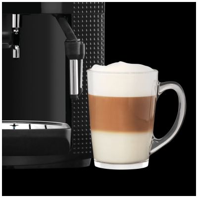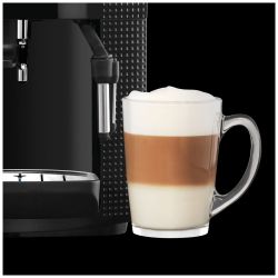 Snaga 1450 W, pritisak 15 bar, metalni konusni mlin, kapacitet spremnika za zrna kafe 260g., kapacitet spremnika za vodu 1.7 lit., odvojiv spremnik za vodu, sistem za detekciju praznog spremnika, cjevčica za paru, 3 razine temperature, 3 postavke jačine kafe, 3 razine finoće mljevenaj kafe, funkcija pare, detekcija kamenca, nosač za šalicu