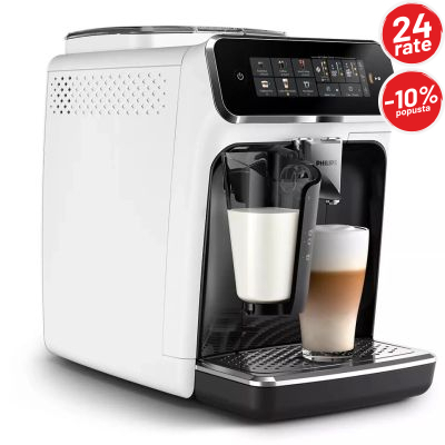 Philips EP3343/50 omogućava uživanje u širokom izboru napitaka uz samo jedan dodir. Na modernom touch ekranu možete izabrati 4 vrste napitaka: espresso, klasičnu kafu, cappuccino ili latte macchiato. Zahvaljujući LatteGo sistemu za mlijeko, uživaćete u kremastoj pjeni, dok se sistem čisti za nekoliko sekundi bez upotrebe dodatnih dijelova ili cijevi.