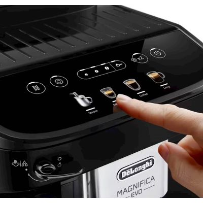 Uživajte u vrhunskom iskustvu kafe iz udobnosti vlastitog doma uz De'Longhi Magnifica Evo. Skuhajte savršeni espresso od svježe mljevenih zrna, jedan od 4 dostupna recepta jednim dodirom. Ima intuitivni zaslon osjetljiv na dodir s ikonama u boji za svaki recept. Njegova elegantna crna završna obrada savršen je dodatak svakoj modernoj kuhinji. * Napravite personalizirane napitke od mlijeka i kafe od svježe mljevenih zrna * 4 recepta s jednim dodirom, ukljucujuci dugi * Kremasta mlijecna pjena zahvaljujuci rucnom pjenilu za mlijeko * Rešetka koja se može prati u mašini za sude, a i odvojiva jedinica za kuhanje za jednostavno cišcenje * Moderan dizajn s elegantnom crnom završnom obradom