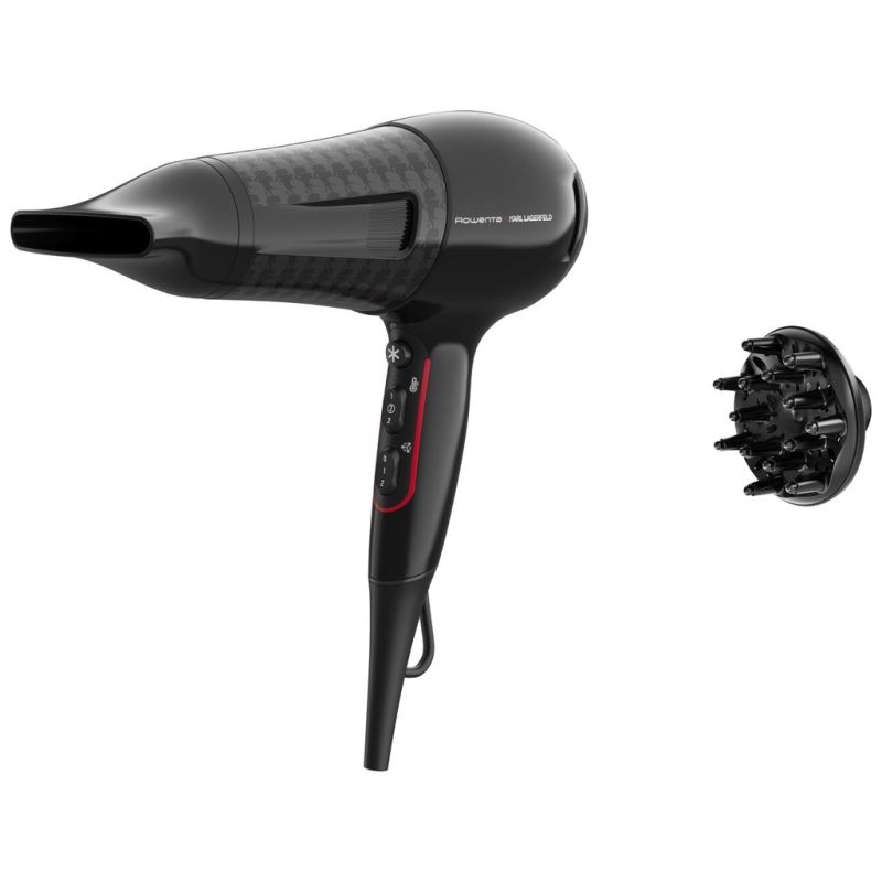 Rowenta Powerline Karl Lagerfeld fen za kosu CV591LF0.Snažan ionski generator.Thermo Control postavka za zaštitu kose.6 postavki brzine/temperature.Udar hladnog zraka,koncentrator,difuzer za volumen, odvojiva rešetka.