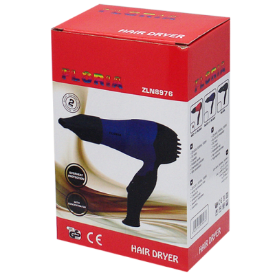 Fen za kosu, snaga 850 W, ventilator 2 brzine, podešavanje temperature u 3 nivoa, zaštita od pregrijavanja, uski usmjerivač zraka, napajanje 220 - 240 V / 50 Hz, dostupne boje crna, plava, crvena