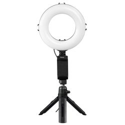 Od tople bijele do svijetle dnevne svjetlosti: kontrolirajte temperaturu boje u 3 stupnja (2500/3800/5500 K) pomocu kablovskog daljinskog upravljaca, za optimizirano i ravnomjerno osvjetljenje video zapisa i portreta, na primjer Od blistavog do ugodno prigušenog: intenzitet svjetla se može podesiti u 10 stupnjeva Uvijek savršena pozicija za snimanje: veliko podrucje za stezanje omogucava umetanje pametnog telefona u portretnom i pejzažnom formatu Neobican ugao snimanja: prstenasto svetlo se može okretati i naginjati zahvaljujuci kuglicnoj glavi stativa Foto studio za poneti: kompaktni komplet svjetiljki se takoder može rastaviti za transport - savršeno za sve blogere i vlogere koji su cesto u pokretu Optimizirano osvjetljenje tokom tutorijala za šminkanje ili selfie portreta: savršeno za v