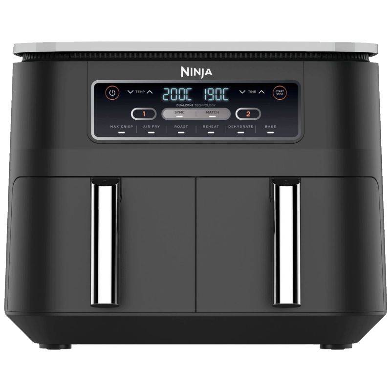 Kad kuhate, vrijeme je sve. Ninja Foodi Dual Zone Air Fryer kapaciteta 7,6 l pomaže vam pripremiti svoj obrok do savršenstva i poslužiti ga u isto vrijeme.