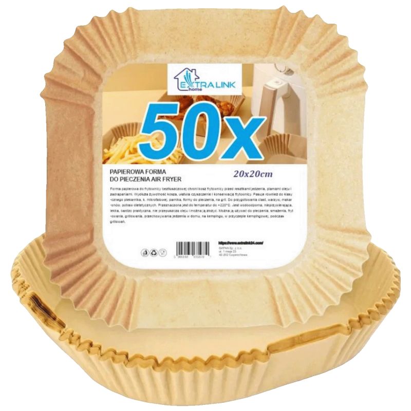 Extralink Papir za pečenje za friteze na vrući zrak, 20x20 cm, 50 kom. - Paper Liners for Air Fryers 50pcs