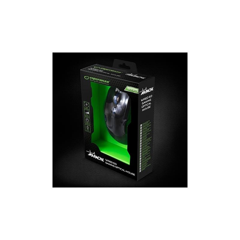 Miš ESPERANZA GAMING APACHE 6D MX403, GREEN, 2400dpi, ergonomic, EGM403B