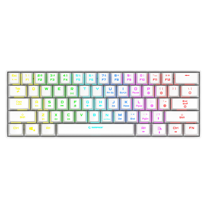 Tastatura gaming RAMPAGE KB-RX63 B-ATOM White Bluetooth RGB Backlight RED SWITCH US Layout 63 Mini, 39912
