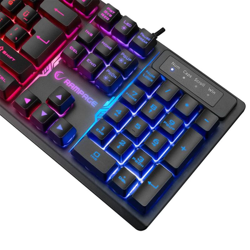 Tastatura gaming RAMPAGE KB-RX77 RUNNER Black USB Rainbow Illuminated US/ENGLISH LAYOUT Wrist Support, 39909