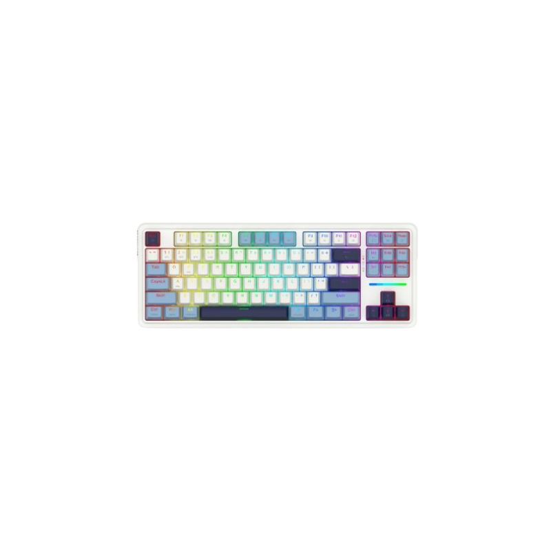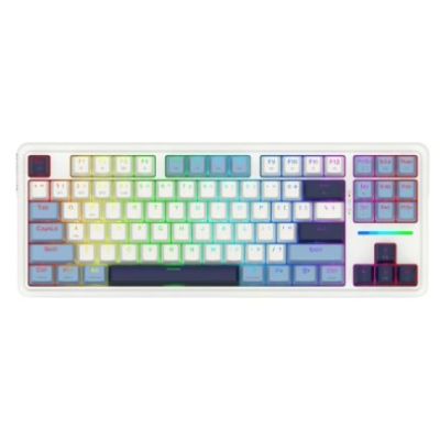 Custom Dragon Chant Linear Switch, Mechanical, Bluetooth and 2.4Ghz wireless, USB-C wired, RGB, 80% 87 Keys TKL Keyboard, 5-Layer Noise Dampening, White & Blue Mixed Keycaps, Gasket Structure & Hot-Swap Functionality.
