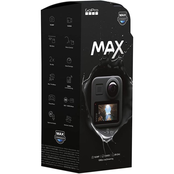 GoPro MAX - 360 kamerica, 360 Video: 6K Source / 5.6K Stitched, 3K Source / Stitched; HERO Video: 1440p, 1080p, Max HyperSmooth Video Stabilization, Live Streaming