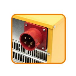 Prijenosna industrijska grijalica sa ventilatorom i infracrvenim grijačem, kalorifer, max. snaga 5000 W, mogućnost promjene snage 2500 W / 3000 W, ventilator sa konstantnim radom, mehanički termostat, statički farbano otporno metalno kučište sa, plastični rukohvat, automatsko isključivanje u slučaju pregrijavanja, IPX4 zaštita od prskajuće vode, dimenzije 290 x 470 x 330 mm, napajanje 400 V ~ / 50 Hz.