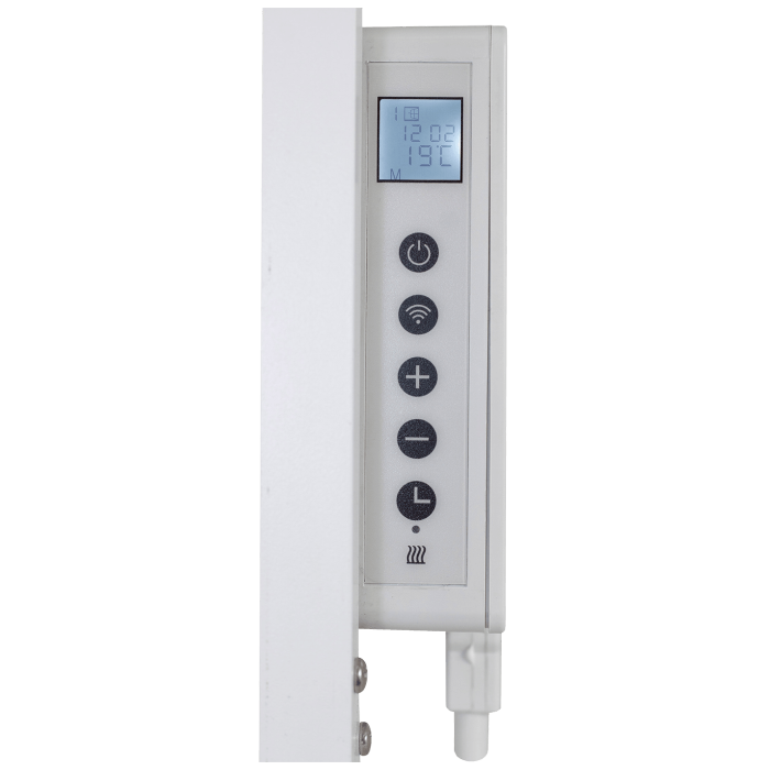 Tjedni timer, elelektronički termostat, detekvija otvorenog prozora, LCD zaslon. Dužina napojnog kabela 1.6 met., napajanje 230 V ~ / 50 Hz, dimenzije 1200 x 500 x 55 mm, IP20