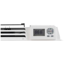 Zidna grijalica, snaga 1250 - 1500 W, LCD zaslon, linearno grijanje, ravnomjerna raspodjela topline, aluminijski grijaći element, elektronički termostat, podesiv raspon temperature 5 do 29 °C, tjedni program, funkcija zaštite od smrzavanja, detekcija otvorenog prozora