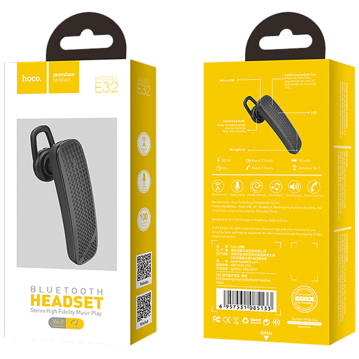 Bežična slušalica, Bluetooth v4.2, radna frekvencija 2,4GHz, domet do 10 met., baterija Li-Polimer 50 mAh, vrijeme punjenja 2 sata, vrijeme razgovora do 3 sati, reprodukcija glazbe do 3 sata, vrijeme na čekanju do 100 sati, punjenje preko microUSB kabela, dimenzije: 71 x 38 x 10 mm. Slušalica je kompatibilna sa uređajima koji podržavaju BT bežičnu tehnologiju...