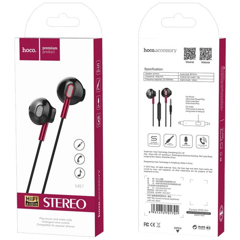 hoco. Slušalice sa mikrofonom, 3.5 mm,dužina kabela 1.2 met, crna - M57 Sky sound, Crne