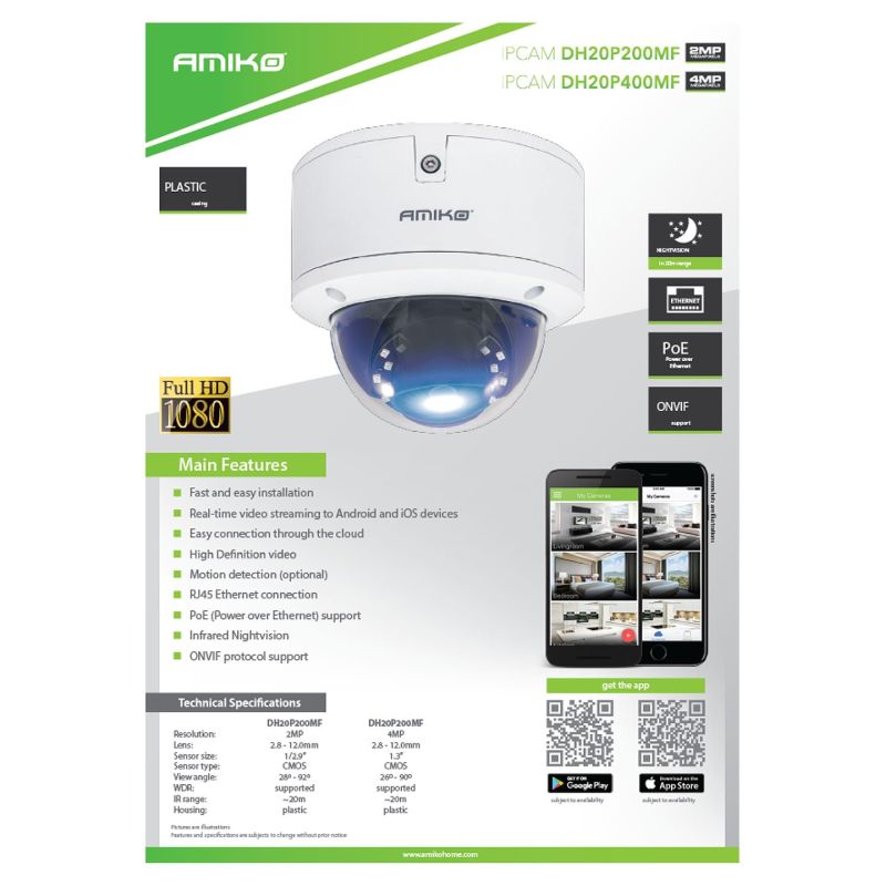 Amiko Home Kamera IP 2 MP, PoE, 1/2.9" SONY CMOS, HD Lens 2,8 - 12mm - DH20P200MF