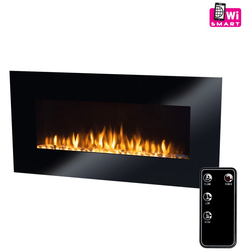 Električni kamin FKK 3000, grijalica podesive snage 1000W / 2000W, montaža na zid, ugrađen WiFi, upravljanje preko aplikacije pametnog telefona i preko daljinskog upravljača,realan efekt plamena, učinak plamena se može koristiti zasebno, termostat, dimenzije: 100 x 13 x 50 cm, napajanje 230VAC / 50Hz