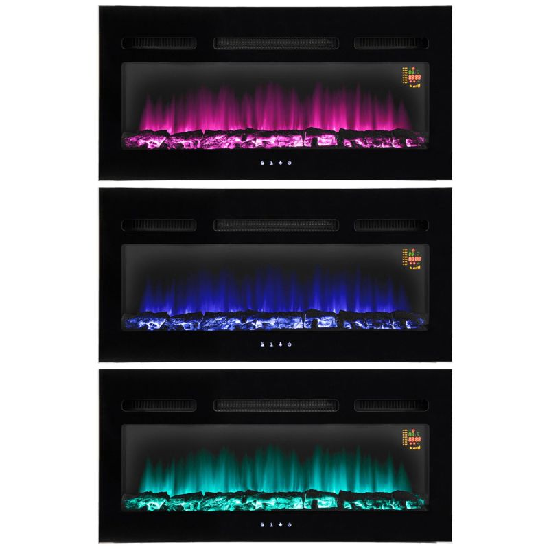 Elektični kamin (grijalica) sa ventilatorom, ugradbeni, snaga grijača 1000W / 2000W, realan efekt sagorijevanja drveta, efekt plamena i grijanje se može koristiti odvojeno, ručno i upravljanje preko daljinskog upravljača, LED izvor svjetlosti ( max. 13 W ), mogučnost programiranja, elektronički termostat