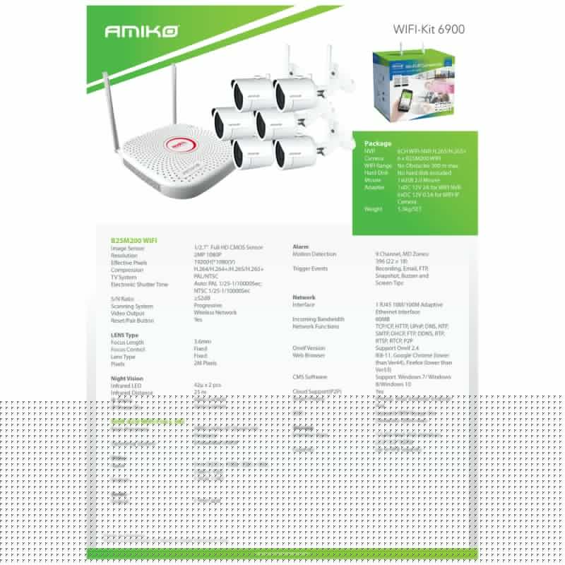 Amiko Home Set za video nadzor, 2 Mpixel, 6 x bullet cam., 9 ch, WiFi - WIFI KIT-6900