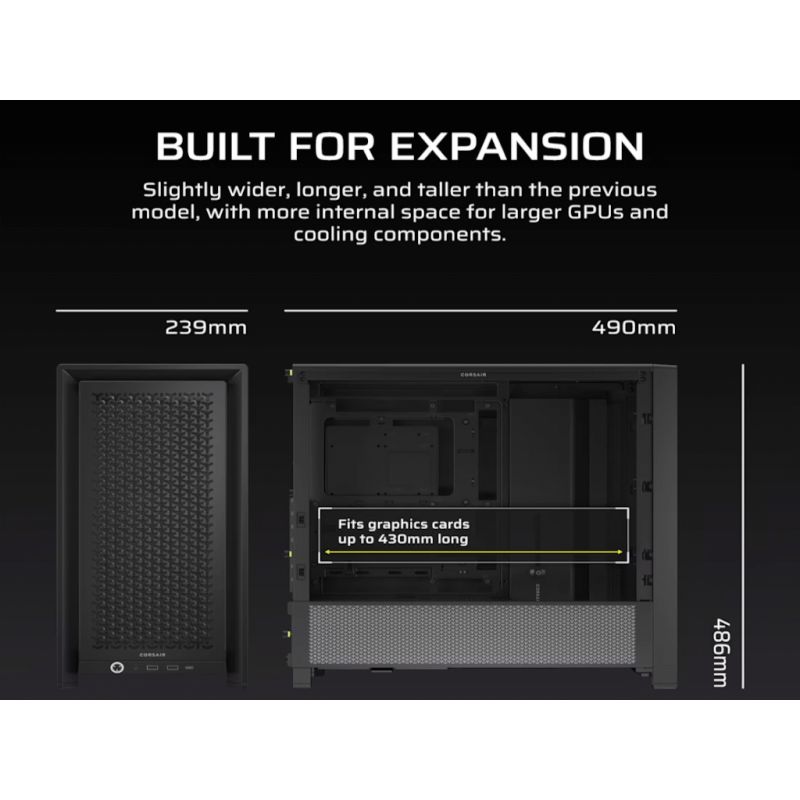 CORSAIR FRAME 4000D Case360mm radiator, 170mm cooler430mm GPU, ATX, Black