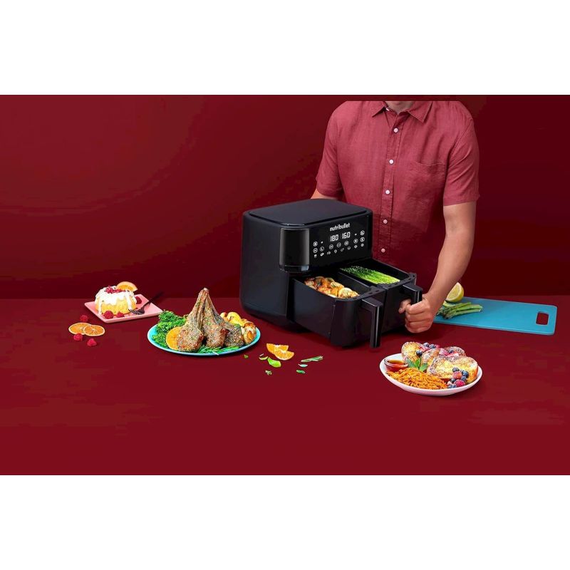 Nutribullet® friteza sa duplom fijokom vaš je idealan pratilac za dobro izbalansirane obroke svih vrsta. Sa dvije korpe za kuhanje od 4 litre i 8 unaprijed podešenih nacina kuhanja, možete stvoriti beskrajnu kombinaciju kompletnih obroka za samo nekoliko minuta. Pecite i pecite, dehidrirajte i tostirajte, sve u isto vrijeme u razlicitim fiokama kako biste stvorili savršen obrok. Tehnologija konvekcije od 360ş smanjuje vrijeme i kolicinu ulja (i nereda) potrebne da bi hrana bila savršena. OVAJ PAKET UKLJUCUJE Nutribullet® friteza s dvije ladice dolazi sa - (1) osnovom friteze od 2850 W - (2) korpama za kuhanje od 4L - (2) stalci - (1) korisnickim prirucnikom.