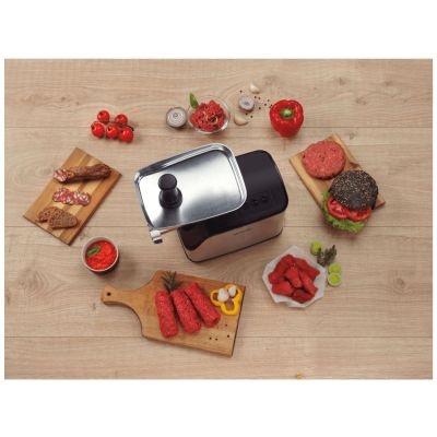 Mašina za mljevenje mesa, snaga motora 2200 W, kapacitet mljevenja 2.2 kg., plavi indikator rada, metalno kućište, reverzibilna funkcija, metalna posuda, 2 rešetke za mljevenje mesa, nastavak za pripremu salama i keksaza.